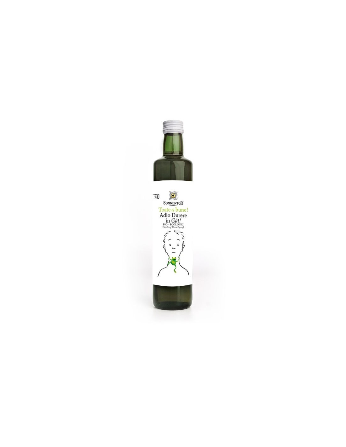 Durere in gat? Aceasta combinatie delicioasa de muguri de brad si plante iti vine in ajutor! Poti sa o diluezi cu apa sau sa o savurezi nediluata lingurita cu lingurita. Acest sirop iti va fi tovaraa de nadejde in schimbarea de sezoane si in timpul iernii. Ingrediente: Infuzie din zahar brut din trestie, ace de molid, cimbru de cultura, patlagina, salvie, menta Pastrati intr-un loc uscat si racoros.