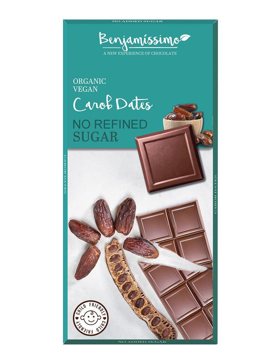 Ciocolata cu pudra de carob si curmale fara zahar adaugatc bio, 70g, Benjamissimo