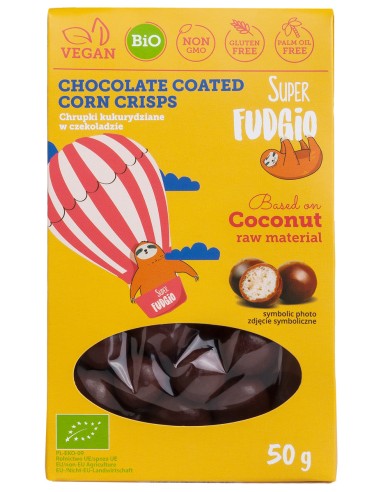 Ingrediente: ciocolata* 89.5% (zahar din trestie*, masa de cacao*, unt de cacao*, cocos praf*, bautura de orez praf*, lecitina din floarea soarelui*), porumb*, unt de cacao*, sirop de glucoza*, guma arabica*, ulei de floarea soarelui*.