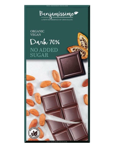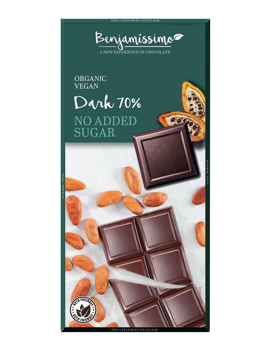 Ciocolata neagra 70% fara zahar adaugat bio, 70g, Benjamissimo