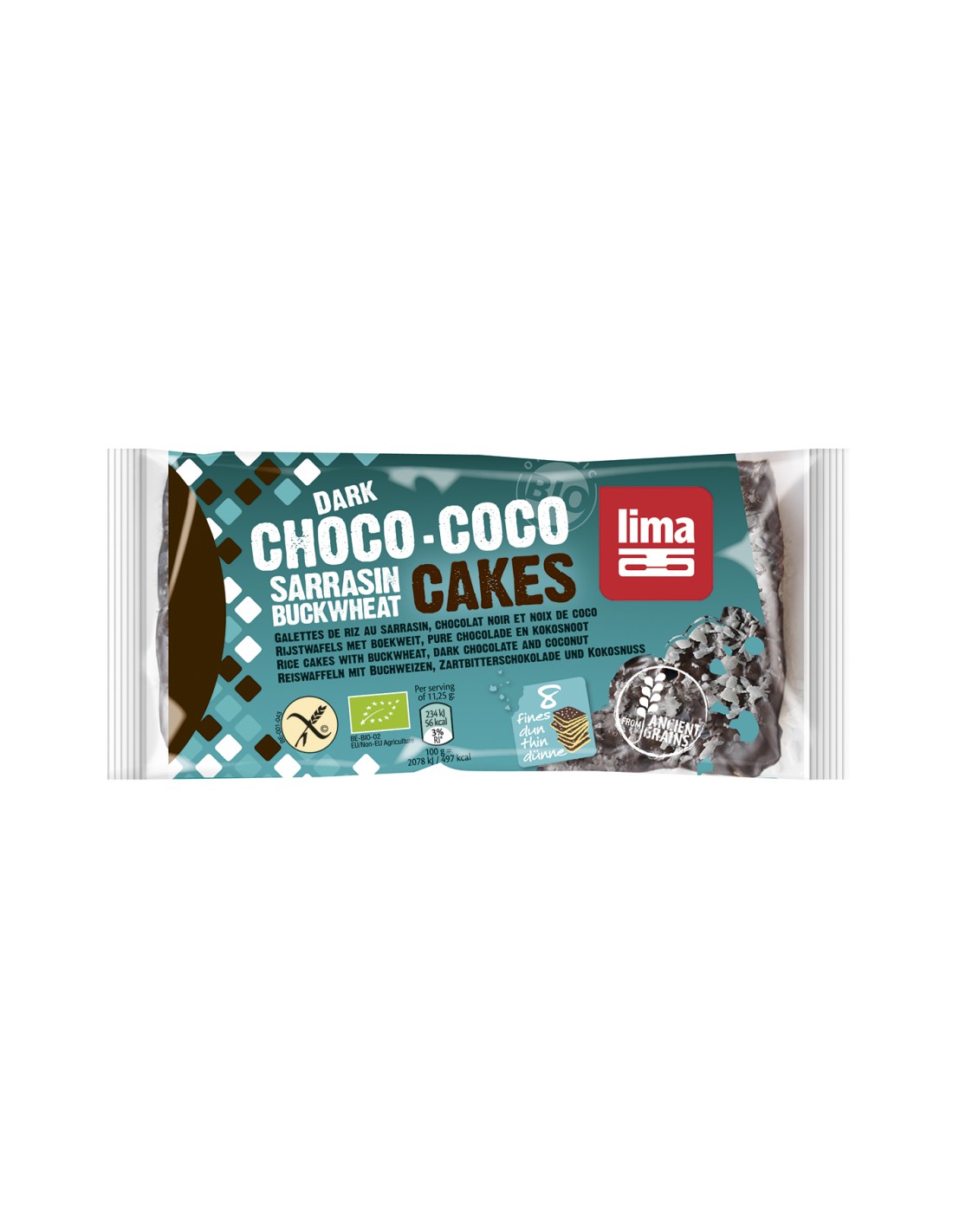 Ingrediente: ciocolata neagra* 53% (masa de cacao*, zahar dint trestie*, unt de cacao*) , orez integral*, hrisca* 8.2%, cocos* 6%.