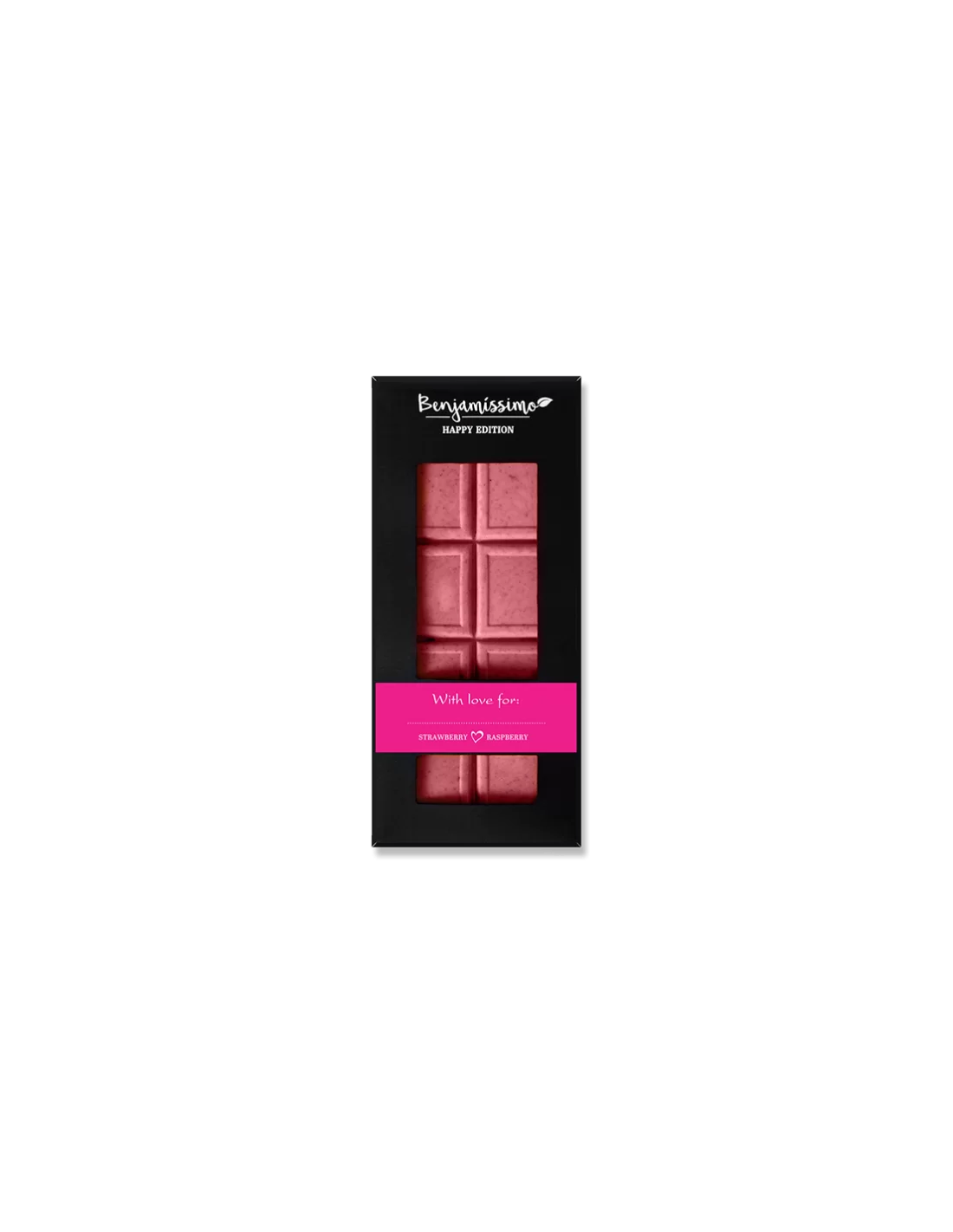 Ciocolata cu capsuni si zmeura bio, 60g, Benjamissimo
