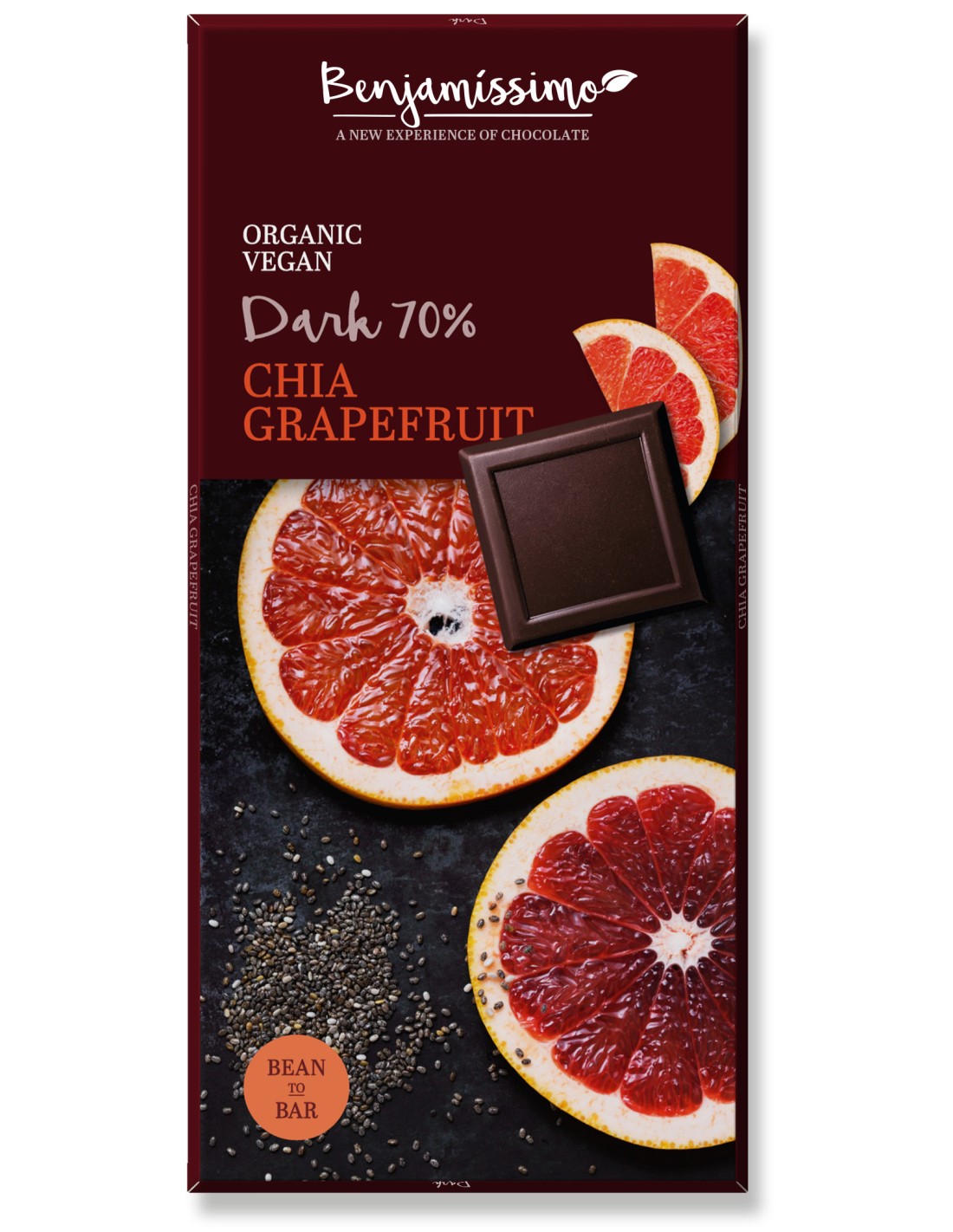 Ciocolata cu chia si grapefruit bio, 70g, Benjamissimo