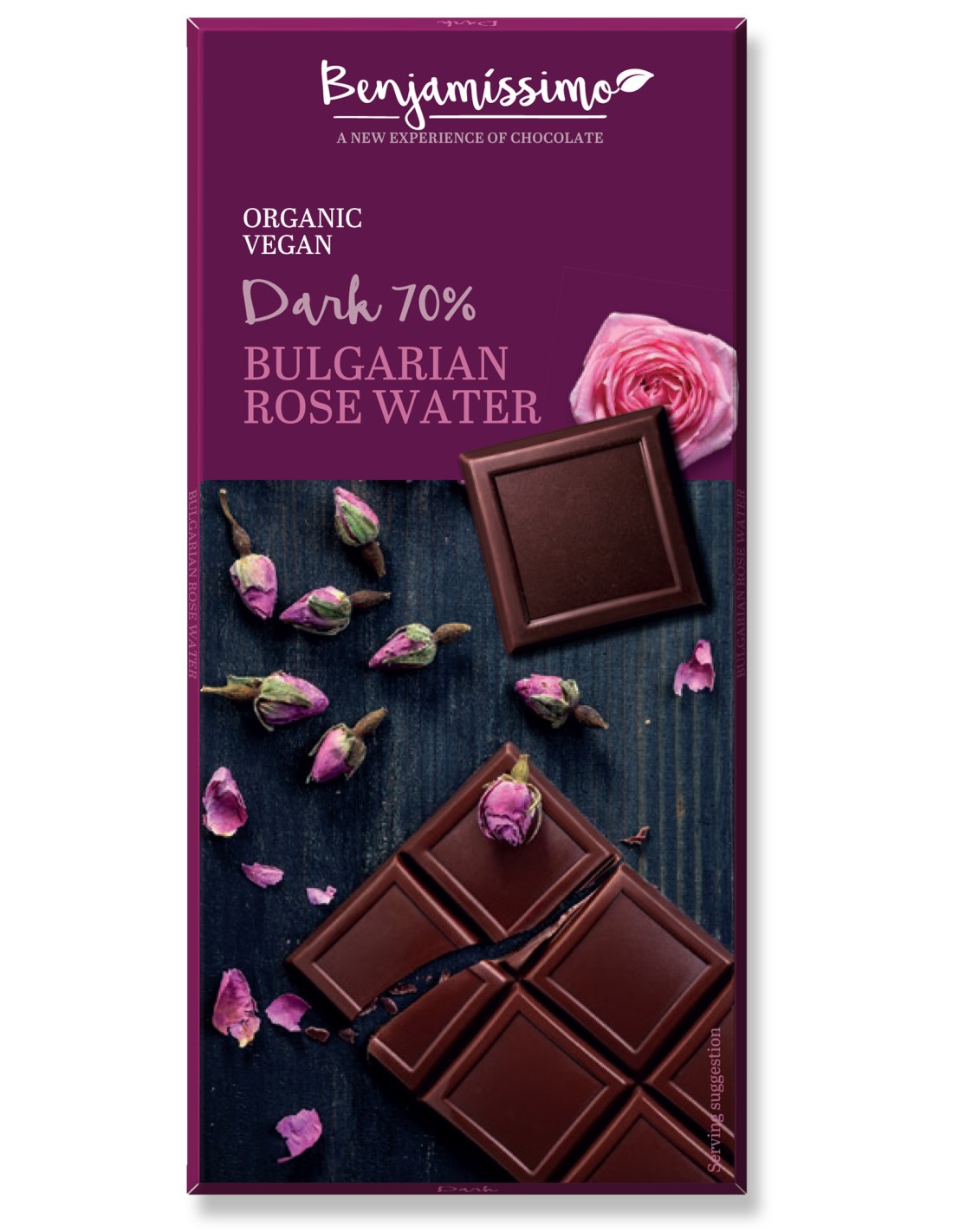 Ciocolata cu apa de trandafir bio, 70g, Benjamissimo