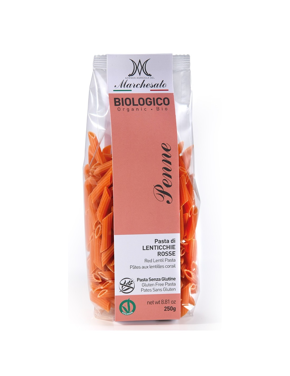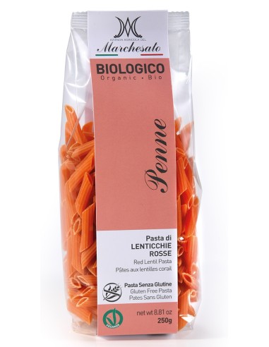 Penne din linte rosie bio fara gluten 250g Marchesato