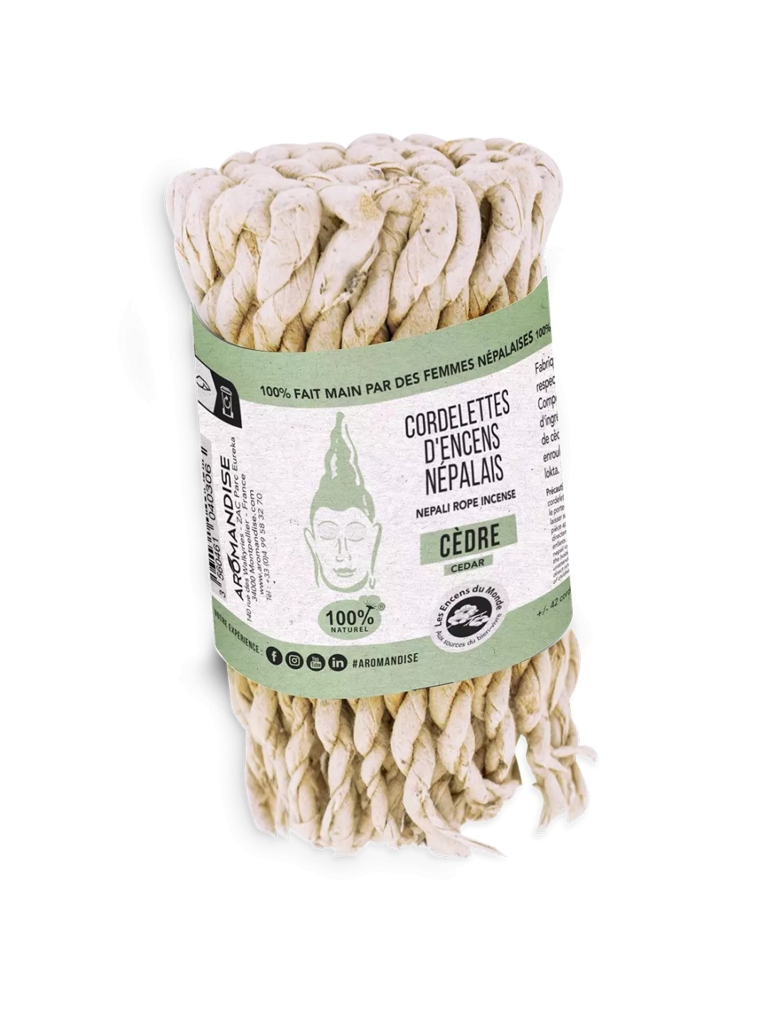 Compus exclusiv din ingrediente naturale: pudre de cedru, valeriana, ienupar, rulate într-o foaie de hârtie lokta.