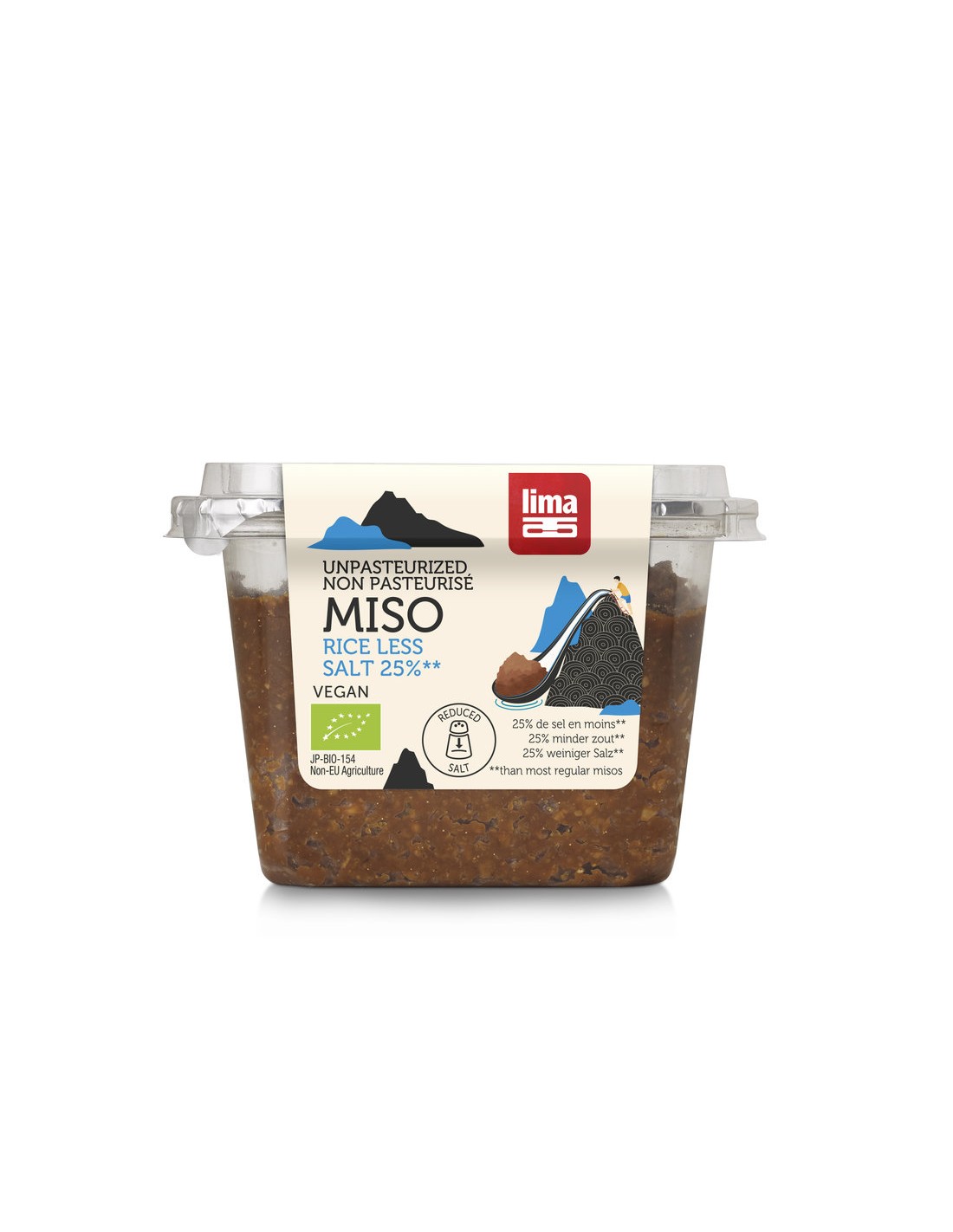 Miso cu 25% mai putina sare se foloseste pentru a spori aroma si a sara usor multe feluri de mancare, similar cu utilizarea unui cub de bouillon in supe, bulionuri si paste sau pentru a imbogati sosuri, placinte cu legume, legume, dressing pentru salate, marinate, si evident pentru preparea unei supe miso. Pur si simplu diluati-o intr-o cantitate mica de apa pentru o utilizare usoara. Pentru mancarurile calde, va recomandam sa o adaugati catre finalul timpului de gatit de a-si pastra proprietatile.