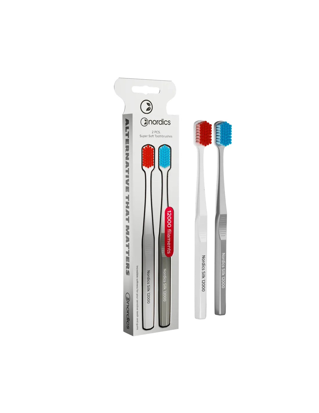 Pachet 2 periute dinti adulti PREMIUM, 12000 filamente, super moale, alb/argintiu, Nordics