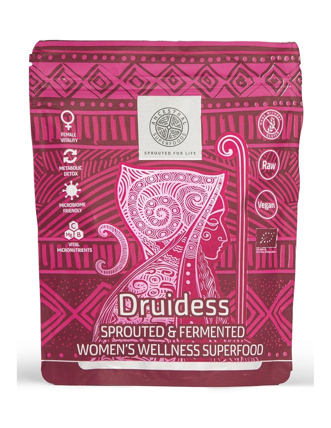 DRUIDESS este inspirat de femeile din timpurile stravechi care aveau rol de lider spiritual. Abilitatile lor erau asociate cu puteri vindecatoare, cunostinte de astronomie, cunostinte despre leacuri pe baza de plante si ierburi. Ideea produselor Ancestral Superfoods este sa ne inspiram din timpurile vechi, sa luam calitatile liderilor de atunci si sa le transpunem omului modern.