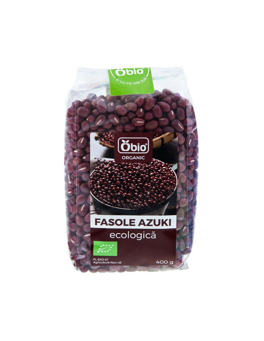 Fasolea Azuki (cunoscuta si sub numele de fasole rosie, Adzuki, sau Aduki) se cultiva preponderent in China si Japonia. Este una dintre cele mai apreciate specii de fasole, datorita proprietatilor sale nutritive ridicate. Este bogata in proteine (20g proteine la 100g produs). Fasolea Azuki Obio provine din culturi ecologice certificate, fara pesticide.
