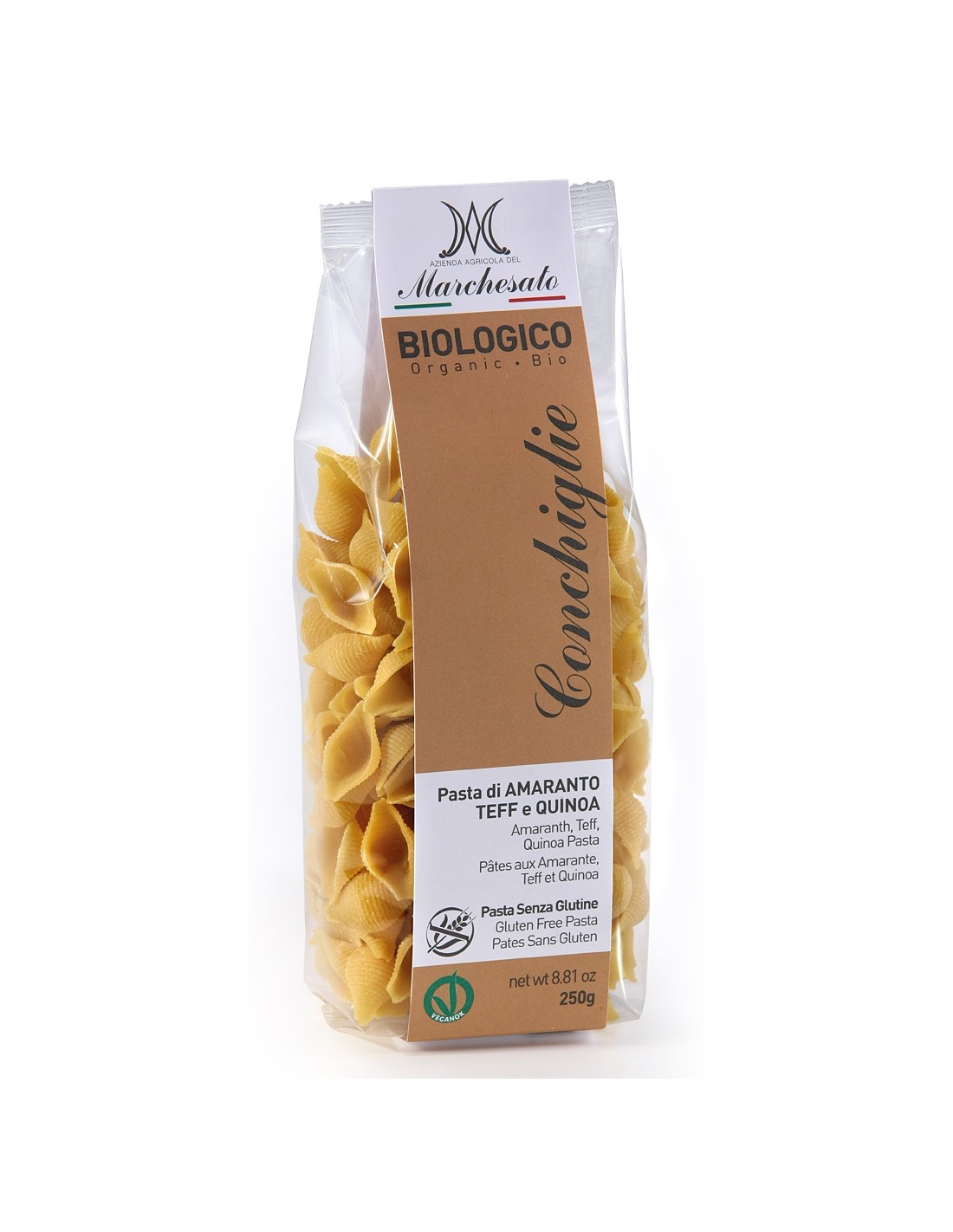 Paste conchiglie din amarant, teff si quinoa bio fara gluten 250g Marchesato