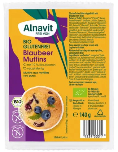 Briose cu afine fara gluten,bio, 140g, 2 buc. Alnavit
