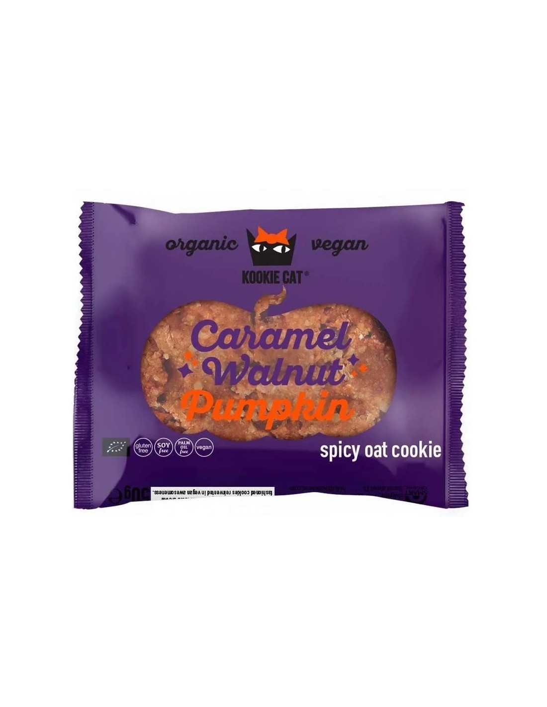 NOUA prajitura de toamna, cu dovleac si nuci caramelizate, este perechea perfecta pentru o carte minunata pe care ai inceput sa o citesti! Are un gust si o aroma irezistibile si va fi cel mai bun prieten al tau in dupa-amiezele ploioase. Acum, cu chipsuri de ciocolata neagra adaugate la reteta, combinatia ta preferata de dovleac si nuci caramelizate este mai tentanta ca niciodata. La fel ca toate prajiturile Kookie Cat este vegana, fara gluten si contine ingrediente de cea mai buna calitate.