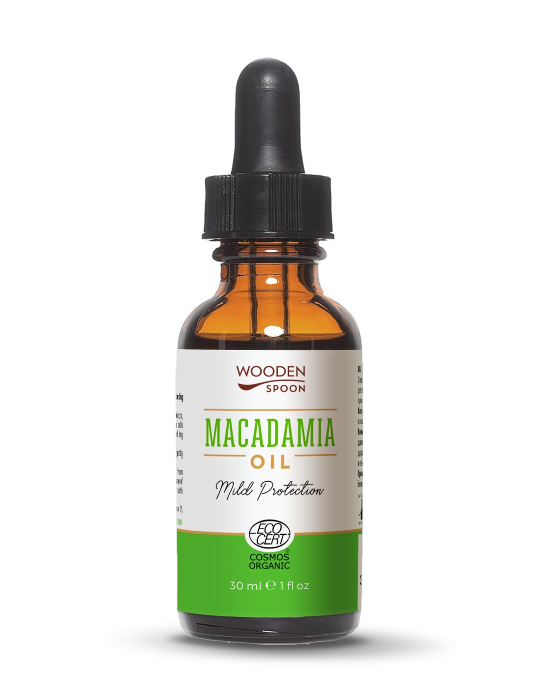 Ulei de macadamia bio, presat la rece. Protejeaza si calmeaza pielea. Ajuta la regenerarea celulelor pielii si restabileste echilibrul in cazul pielii uscate si crapate.